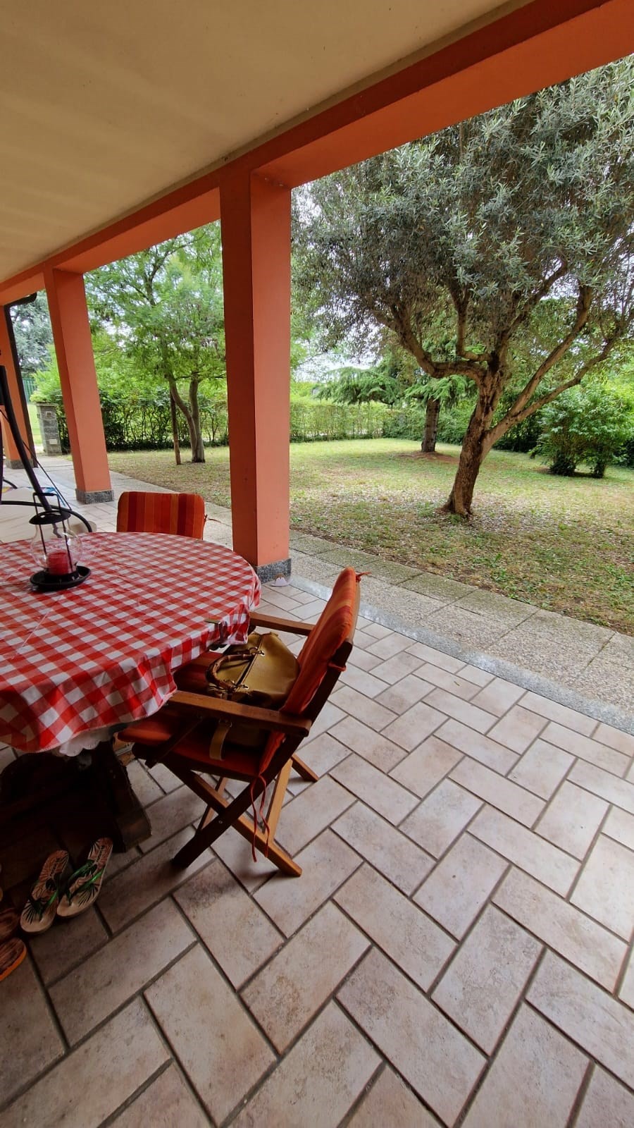 Sul retro dell’abitazione si sviluppano ulteriori circa 600 mq di giardino esclusivo, anch’esso piantumato, con area dedicata a caminetto e gazebo, ideale per cene conviviali e momenti in famiglia. Presente inoltre un secondo ingresso carraio con accesso diretto verso il centro del paese, comodo e funzionale, che consente di evitare l’accesso dalla Statale Romea.